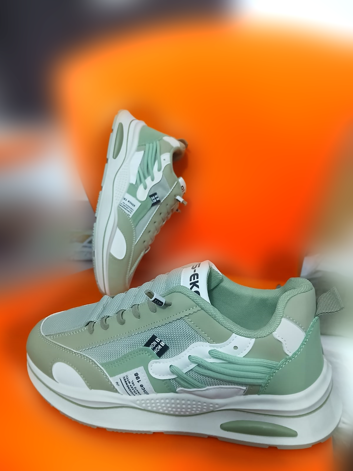 Trbottomy Retro Thick-Soled Low-Top Lace-Up Sports Shoes - Green Color